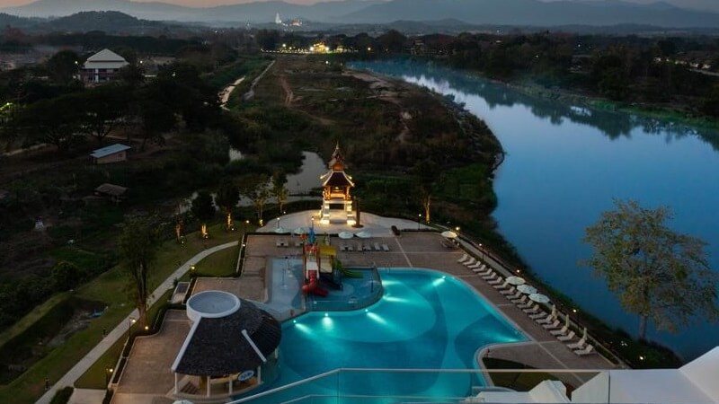 This resort has been kept in immaculate condition and is still impressive after all these years. The location is a bit out of town, hence very quiet, and especially tranquil being on an island in the Kok river. The view from the room is spectacular. The room is very large and very nicely decorated. The roof-top bar and restaurant is really beautiful and deal for taking in the sunset during happy hour. The pool is very large and lovely. The grounds of the hotel are also lovely and pristine. The lobby is also very beautiful and a pleasant place to spend time. The resort staff are great. There is even a convenience and souvenir store on-site.