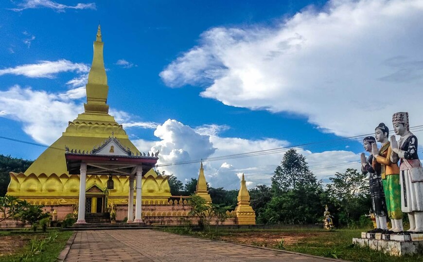 About religious stupa, Luang Nam Tha is famous for the amazing That Phum Puk, which is distinctive for its location. The stupa is constructed on a hill, which stands out in the rice fields area, and nearby a waterfall. With such a wealthy nature, green, untouched jungle, the region is appropriate for ecotourism. To get to the stupa, we will go through the Nam Sun village, where has the traditional business of making paper from bamboo.